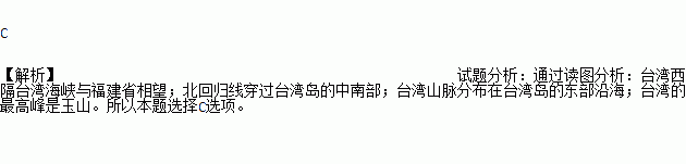 A. 台湾西隔台湾海峡与福建省相望 B. 北回归线穿过台湾岛的中南部