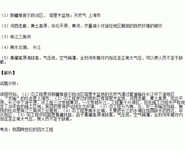 提示:四大工程包括(南水北调;西气东输;西电东送;青藏铁路)