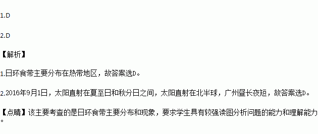 2016年9月1日,一场令人叹为观止的日环食在非洲大陆上演.该天文奇观受到广大天文爱好者的关注.读下图完成下列各题