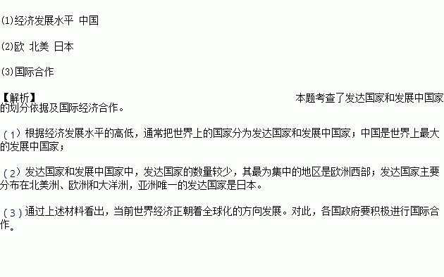 (1)ÊÀ½çÉϵĹú¼Ò¸ù¾Ý__________________µÄ¸ßµÍ£¬¿ÉÒÔ·ÖΪ·¢´ï¹ú¼ÒºÍ·¢Õ¹Öйú¼Ò£¬ÆäÖÐ×î´óµÄ·¢Õ¹Öйú¼ÒÊÇ________¡£