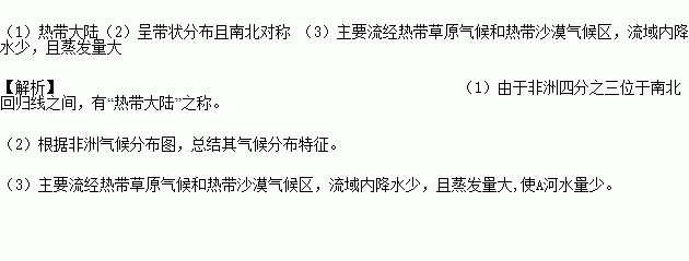 (3)A河是世界上最长的河,但其水量小于B河,主要原因是 。