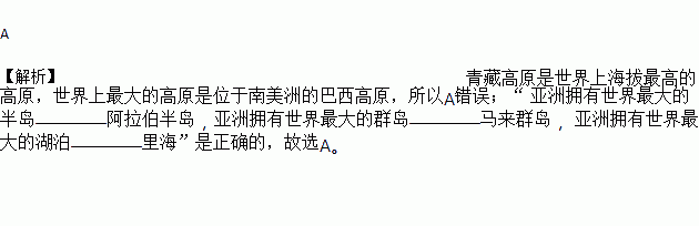 C. 亚洲拥有世界最大的群岛————马来群岛