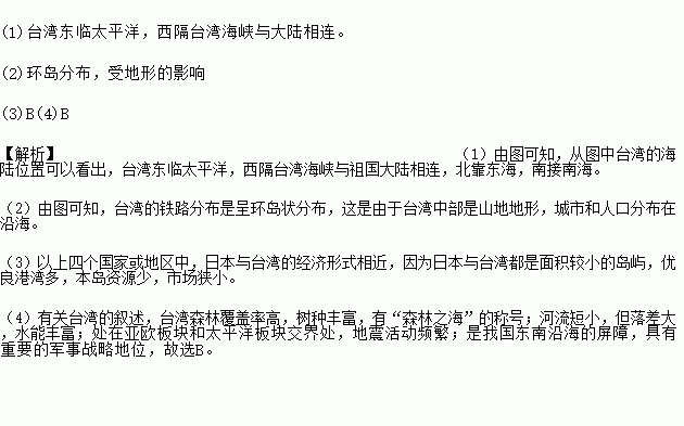 £¨2£©¶ÁÒÒͼ£¬Ì¨Í嵺µÄÌú··Ö²¼ÌصãÊÇ_____________£¬ÐγÉÕâÖÖ·Ö²¼ÌصãµÄÖ÷ÒªÔÒòÊÇ______________________________¡£