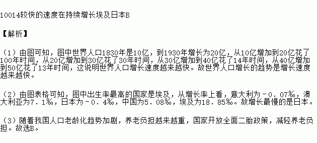 ÊÀ½çµÄÈ˿ڲ»µ«ÔÚ²»Í¬Ê±¼äÔö³¤ËٶȲ»Í¬£¬ÔÚͬһʱ¼ä¶Î£¬²»Í¬¹ú¼ÒµÄÔö³¤ËÙ¶ÈÒ²²»¾¡Ïàͬ£®¶ÁÊÀ½çÈË¿ÚÔö³¤Ê¾Òâͼ¼°²»Í¬¹ú¼ÒÈ˿ڳöÉúÂÊ¡¢ËÀÍöÂÊ±È½Ï±í£¬½áºÏËùѧÄÚÈÝ£¬Íê³ÉÏÂÁÐÎÊÌ⣮
