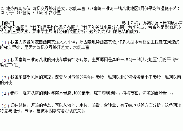 (1)地形对河流的影响:我国大多数河流自西向东注入太平洋,原因是 ,许多大型水利枢纽工程建在河流的阶梯交界处,是因为 。