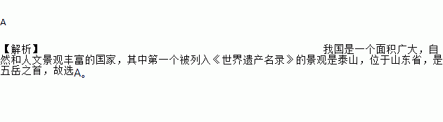 A 【解析】我国是一个面积广大,自然和人文景观丰富的国家,其中第一个被列入《世界遗产名录》的景观是泰山,位于山东省,是五岳之首,故选A。