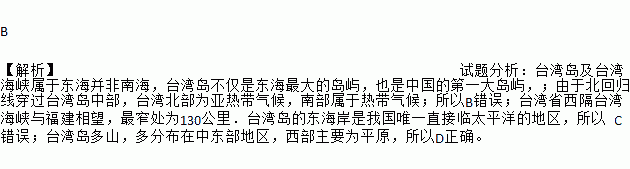 台湾是祖国圣神领土不可分割的一部分,下图所蕴含的台湾信息,叙述正确的是( )