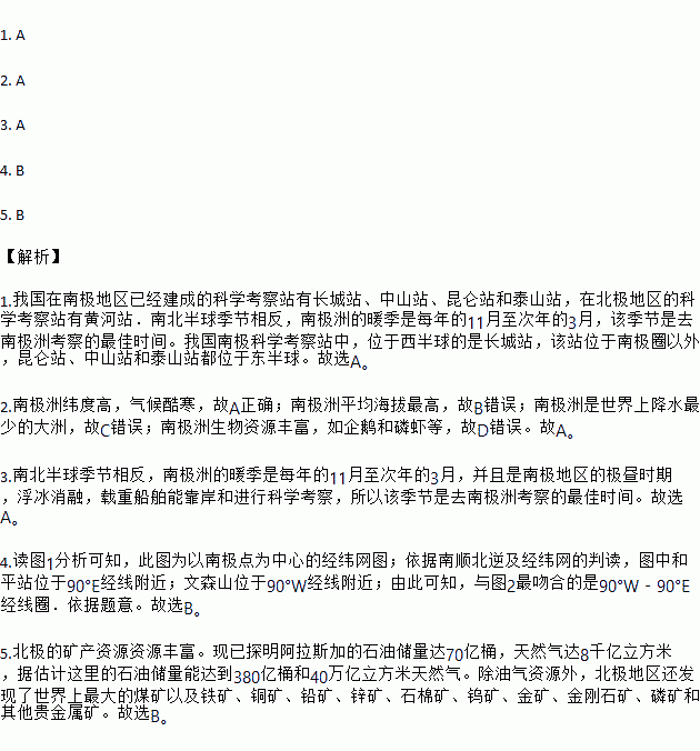 5.北极地区矿产资源十分丰富,目前,在北极地区发现的矿产主要有( )