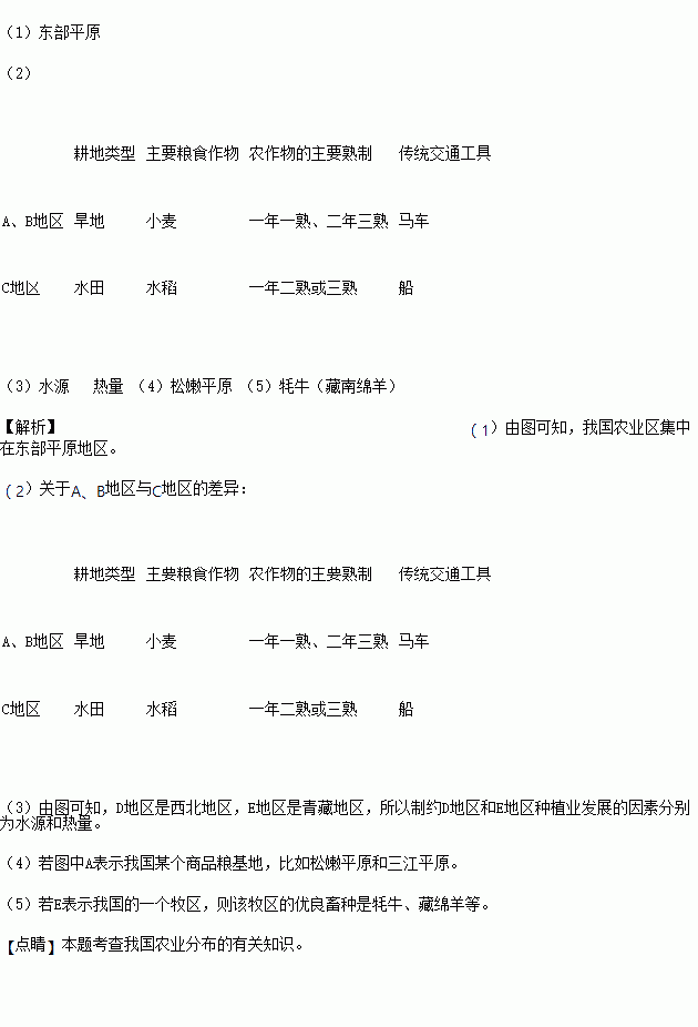 (5)若E表示我国的一个牧区,则该牧区的优良畜种是_________。