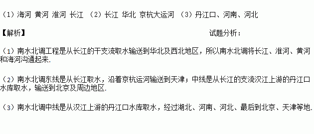 (3)ÄÏË®±±µ÷¹¤³ÌµÄÖÐÏßÊÇ´Ó£ßË®¿âµ÷Ë®£¬¾¹ýºþ±±¡¢£ß¡¢£ßµÈÊ¡ÊäÍù±±¾©¡¢Ìì½ò¡£