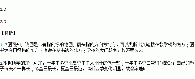 A. ʵÑéÂ¥ÔÚ½Ìѧ¥µÄÄÏ·½ B. ͼÊé¹ÝÔÚÌï¾¶³¡µÄ¶«·½