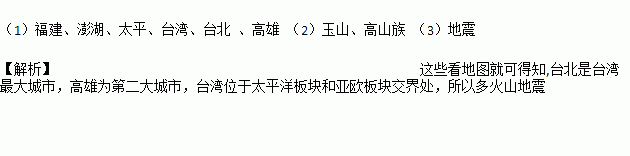 (3)台湾处于板块与板块交接处,地壳活跃,多火山和。