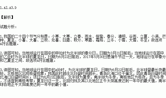 2.2017Äê¶ËÎç½ÚÄÇÌ죬µØÇòÔÚ¹«×ª¹ìµÀÉϵĴóÖÂλÖÃÊÇ£¨£©