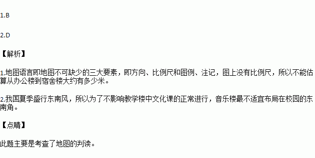 2.夏季开窗的时候,音乐楼随风传出的声音往往会干扰教学楼中文化课的正常进行。小明学校拟建一座音乐楼,如果只从盛行风向角度考虑,音乐楼最不适宜布局在校园的( )