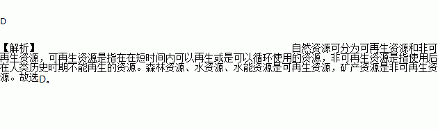 A. 森林资源 B. 水资源 C. 水能资源 D. 矿产资源