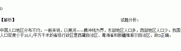 下列地区人口密度都在每平方千米10人以下的一组是( )