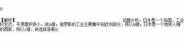 C. 俄罗斯人口稠密,日本 地广人稀 D. 俄罗斯自然资源丰富,日本资源缺乏