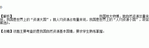 D. 就自然资源总量来说,我国是世界上的“资源大国”;就人均资源占有量来说,我国是世界上的“人均资源小国”