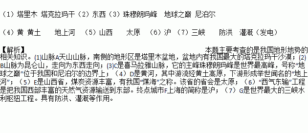 (7)G是世界最大的 水利枢纽工程。具有 、 等作用。