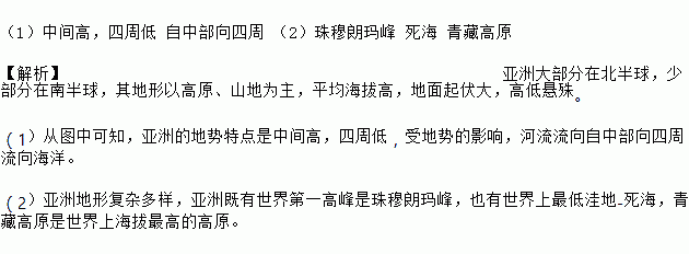 (1)亚洲地势特点是______ __ ,受地势的影响,河流流向______ _______。(方向)