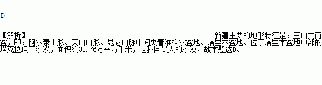 我国最大的沙漠——塔克拉玛干沙漠位于( )