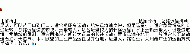 Å·Ã˵Ĺ¤Òµ²úÆ·ÔËÍùÊÀ½ç¸÷µØ,²ÉÓÃ×î¹ã·ºµÄÔËÊ䷽ʽÊÇ( ¡¡)