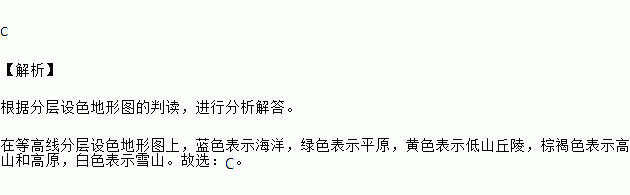 在分层设色地形图中绿色代表的地形类型是 ( )