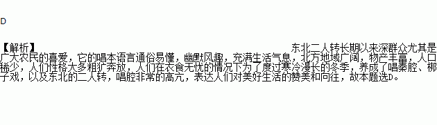 形成于东北的“二人转”一向以欢乐喜庆为特色,这种文艺特点的形成,可能与东北地区