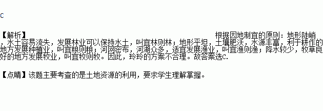 某实验中学的地理兴趣小组在讨论四地土地资源的利用方案,其中哪位同学的方案不合理( )