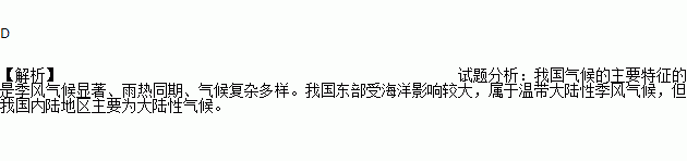 A. 季风气候显著 B. 多特殊天气 C. 气候复杂多样 D. 海洋性湿润气候显著
