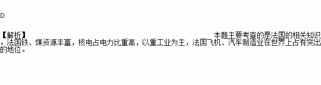 D. 法国飞机、汽车制造业在世界上占有突出的地位