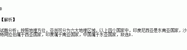 A.印度尼西亚——东南亚 B.沙特阿拉伯——中亚