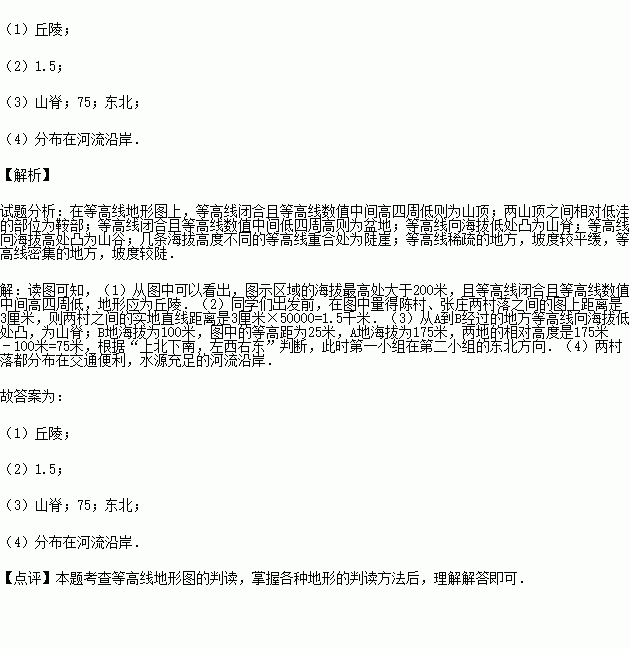 (1)从图中可以看出,图示区域的地形应该是 .(选填“平原”、“丘陵”、“山地”、“高原”)
