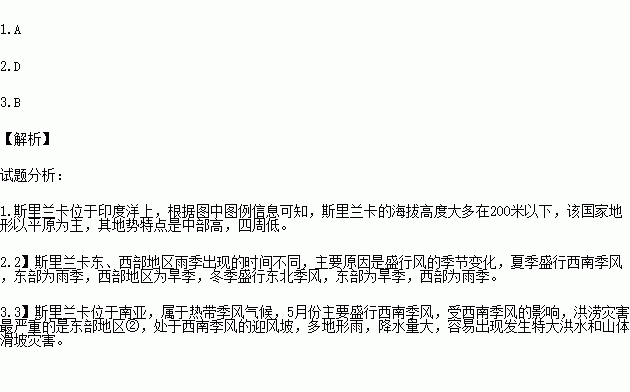 2017Äê5ÔÂ28ÈÕ£¬Ë¹ÀïÀ¼¿¨·¢ÉúÌØ´óºéË®ºÍɽÌ廬ÆÂ£¬ËðÊ§ÖØ´ó£¬ÖйúÕþ¸®Ìṩ1500ÍòÔª½ô¼±È˵ÀÖ÷ÒåÔ®ÖúÎï×ÊÏÂͼΪ˹ÀïÀ¼¿¨ÂÔͼ¡£¶ÁͼÍê³ÉÏÂÁÐСÌâ¡£