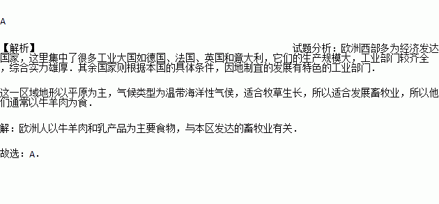 欧洲人以牛羊肉和乳产品为主要食物,这种饮食结构是因为这里有发达的