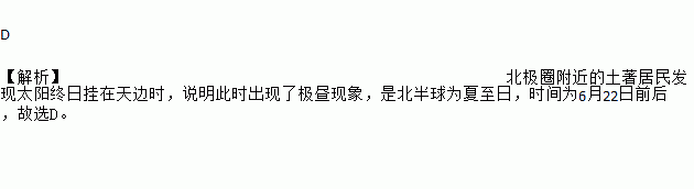 北极圈附近的土著居民发现太阳终日挂在天边时,下列叙述正确的是()