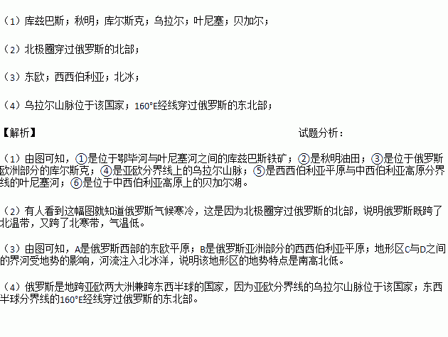 (2)有人看到这幅图,就知道俄罗斯气候寒冷,得出这个结论的依据是:________________________。