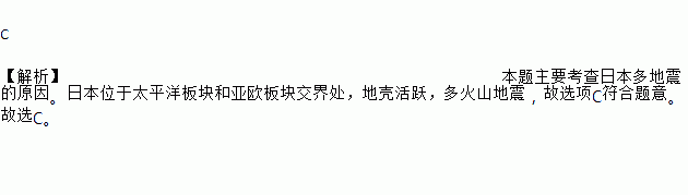C ¡¾½âÎö¡¿±¾ÌâÖ÷Òª¿¼²éÈÕ±¾¶àµØÕðµÄÔÒò¡£ÈÕ±¾Î»ÓÚ̫ƽÑó°å¿éºÍÑÇÅ·°å¿é½»½ç´¦£¬µØ¿Ç»îÔ¾£¬¶à»ðɽµØÕ𣬹ÊÑ¡ÏîC·ûºÏÌâÒâ¡£¹ÊÑ¡C¡£