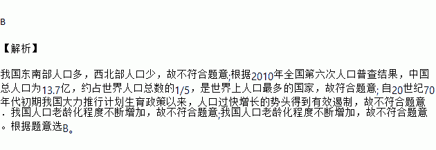 A. 西北部人口多于东南部 B. 我国是世界人口最多的国家