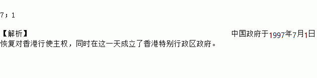 中国政府于1997年________月________日恢复对香港行驶主权.