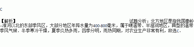 A. 为半湿润半干旱的亚热带季风气候 B. 年降水量多在800MM以上