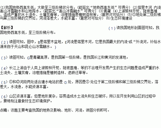 (2)图中,B是塔里木盆地,E河流是 ,它是我国最大的 (选填“内流”或“外流”)河,补给水源来自于 。