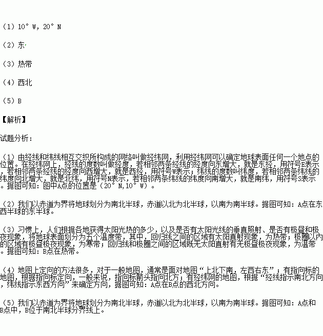 (5)A点和B点中,位于南北半球分界线上的是________.(填字母)