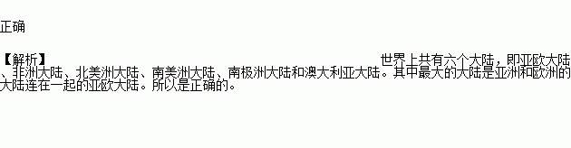 世界面积最大的大陆是亚欧大陆( )