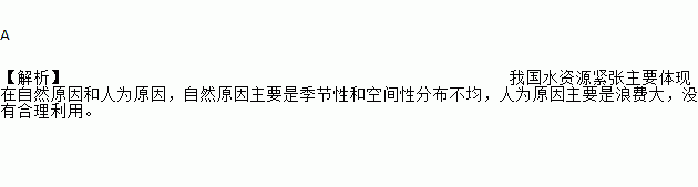 A 【解析】我国水资源紧张主要体现在自然原因和人为原因,自然原因主要是季节性和空间性分布不均,人为原因主要是浪费大,没有合理利用。
