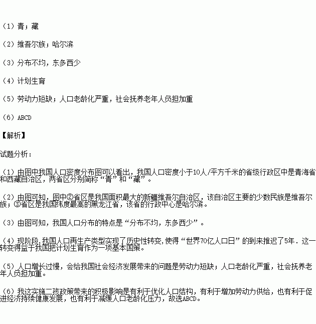 (4)现阶段,我国人口再生产类型实现了历史性转变,使得“世界70亿人口日”的到来推迟了5年.这一转变得益于我国把_________________作为一项基本国策.