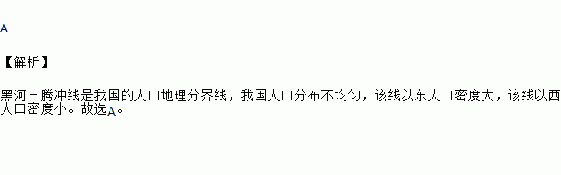 A. 黑河﹣腾冲线以东 B. 黑河﹣腾冲线以西