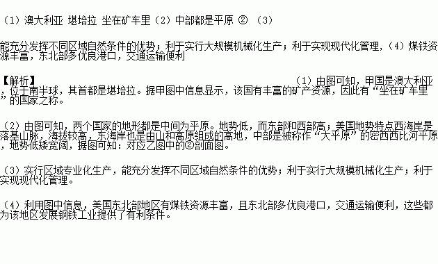 (4)丙图所示国家东北部地区发展钢铁工业有利条件是__________(至少1点)。
