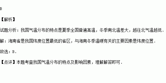 寒假期间小华与家人去海南度假,那里即便冬天也很温暖.请你判断与海南冬季温暖有关的主要因素是( )
