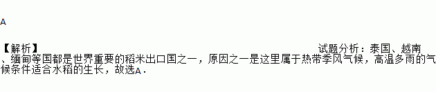 泰国、越南、缅甸等国都是世界重要的稻米出口国,原因之一,这里有适宜水稻生长的气候条件( )